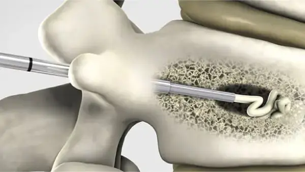 La cimentoplastie rachidienne (ou vertébroplastie) correspond à l’injection d’une résine de renforcement au sein d’une ou plusieurs vertèbre(s).