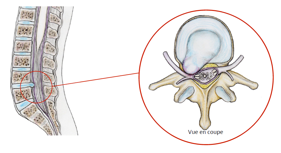 Le but de l’opération est de décoincer le nerf à l’intérieur de la colonne, en retirant la hernie discale.
