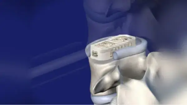 La prothèse discale permet de remplacer également le disque mais en conservant la mobilité du niveau atteint. Elle s’adresse aux patients dont tous les autres éléments de la colonne vertébrale sont en parfait état (patients jeunes sans arthrose).